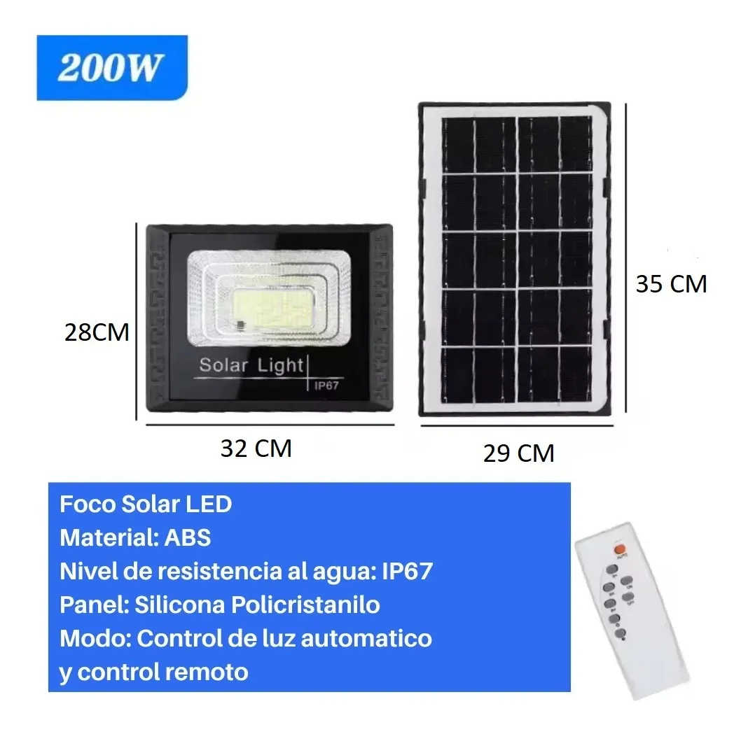 Foco Reflector Solar 200w + Panel Solar Y Control Remoto